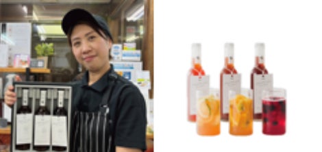 南相馬市のフルーツ専門店。健康意識が高い方々を中心に話題の “フィトテラピー(植物療法)”を取り入れたハーブコーディアルシロップにはポリフェノールが豊富な赤ブドウの葉を使用。夏は炭酸水で割ってアイスがオススメ。